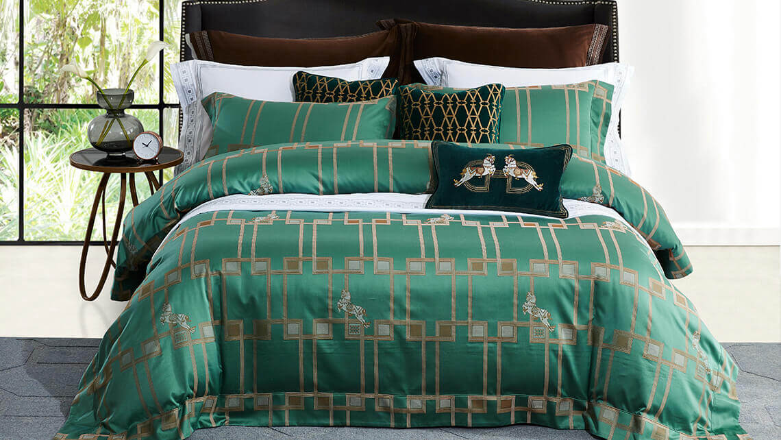 加上点缀的烈马和欧式线条,整件床品温暖、含蓄、野性,形成无法抗拒的魅力和治愈力。