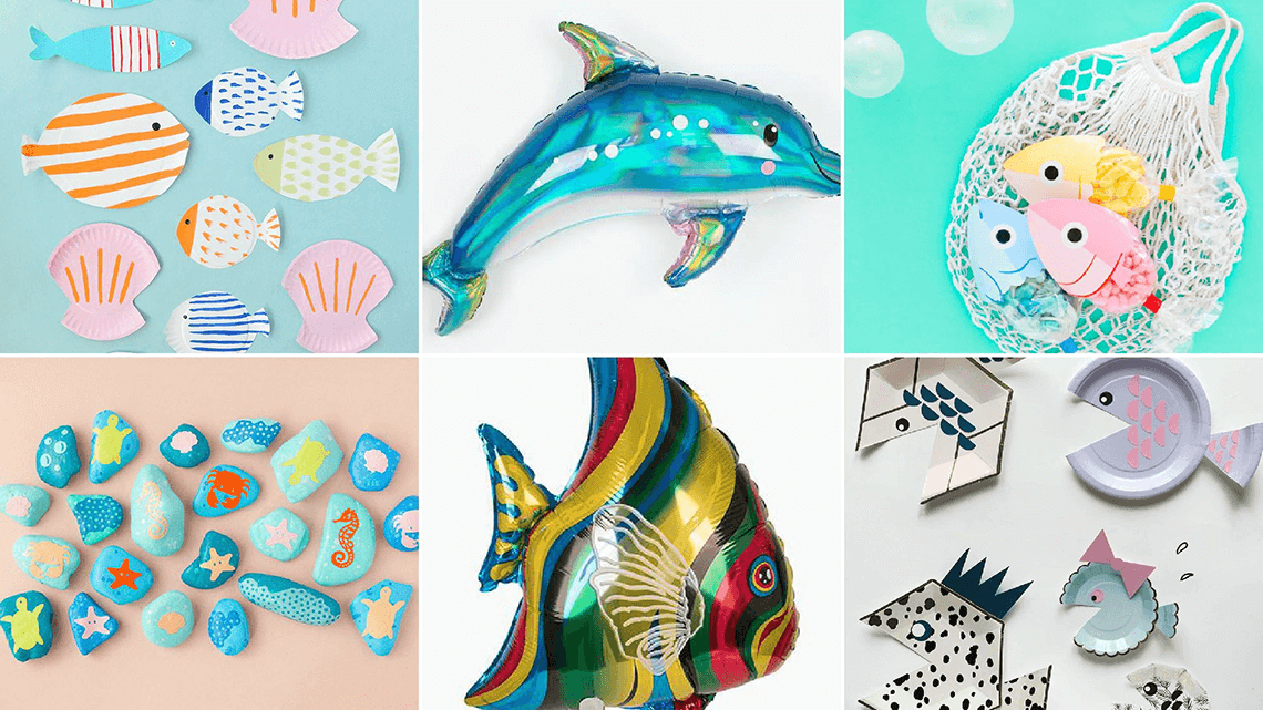 除了鲨鱼主题派对,所有的水下动物都可以有闪光的机会,比如金鱼、乌龟、鲸鱼和章鱼等。这一主题以一种有趣且多彩的方式推崇大海和海底生物,采用自然物品来打造充满趣味的装饰,比如鹅卵石、贝壳、甚至是水果。鼓励孩子们进行创新,采用贝壳制作自己的相框,或穿上潜水衣和脚蹼。