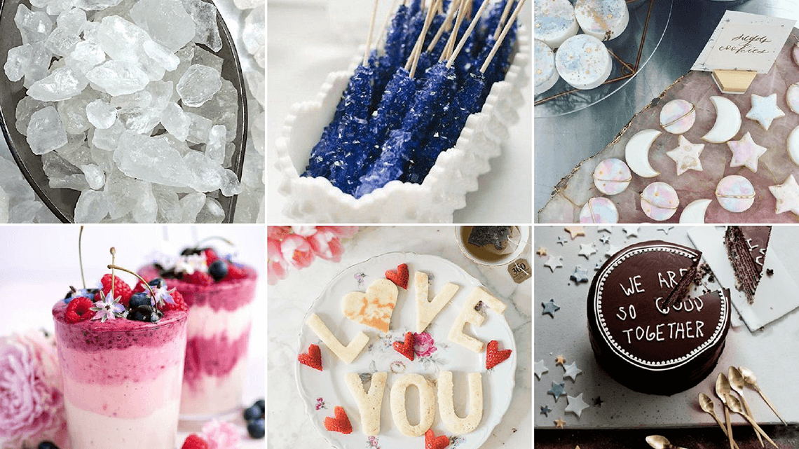 食物&饮品采用宇宙主题,如从银河系和占星术中汲取设计灵感的甜点,健康的主题也很重要。俏皮的外观,搭配渐变的色彩或字母的形状拼成的充满爱意的词汇。使用金属色糖霜、天然色素和食用花卉等小细节,形成引人注目的吸引力。