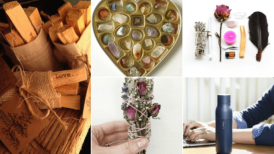新鲜和干燥的花卉都有治愈和改善情绪的特性,这样可以让精致礼品变得更有意义和健康。芬芳的熏香棒是一种可行的选择,再搭配一颗灵石。赋予礼品盒一种精神层次的趣味,例如在传统巧克力旁边搭配上水晶。