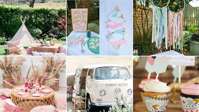 今年的假日季已经正式开始,并转移到了后院,配有舒适的角落、帐篷、Ins风拍照背景、花冠以及有羽毛装饰的甜品,青少年和更年幼的孩子们将享受他们的户外时光、听音乐、社交,并在阳光下进行放松。为呈现一种额外的假日主题触感,采用一些个性化的腕带作为邀请函和装饰品,派对后还可作为纪念品进行收藏。