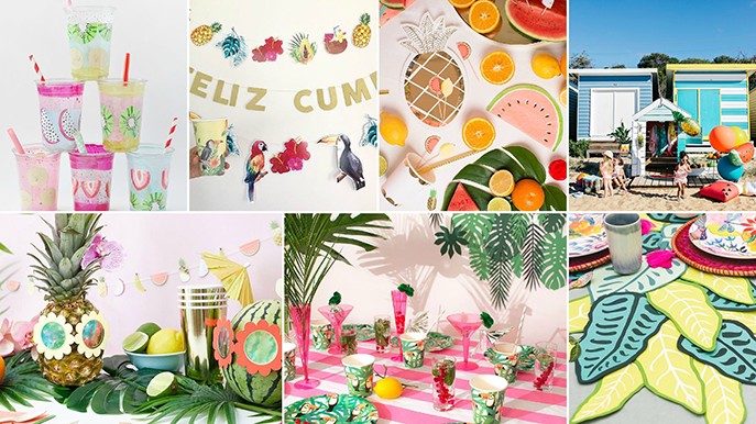 盛夏的感觉被融入到今年的儿童、青少年派对中,结合新鲜的异域水果、茂盛绿植以及热带动物。菠萝作为今夏一大关键图标,激发了蛋糕设计的灵感,采用明亮黄色、绿色色调,让餐桌呈现一种清新的效果。采用大片的新鲜棕榈树树叶和水果来装饰桌面,结合有趣的动物形状纸盘和五彩纸屑为了呈现一种额外的夏日感,可以将派对带到海滩,邀请孩子们去游泳、饮用新鲜的椰子汁并建造沙滩城堡。