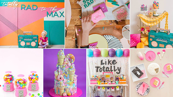 80年代主题派对占据了今年的核心地位,采用经典永恒复古元素让父母和孩子都感受到快乐,老式录音机、弹力紧身衣以及录音带、着装的规范是规定好的,鼓励小朋友们穿上霓虹色有氧运动服和紧身裤。制作主题音乐播放列表,让孩子们跳舞并愉快的玩耍、纸盘以及带有80年代图标的糖衣饼干。