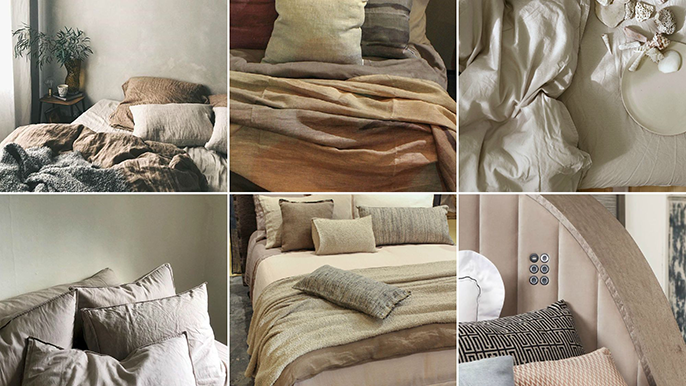 中性色的回归对卧室产生影响,为空间带来精致舒缓的特质,燕麦色、乳白色以及浅灰色等温暖的色调是纯白色的替代色。通过预洗和免熨的触感,以及不规则的天然纱线,增添温馨感,融入蘑菇棕色色调,呈现出质朴的感觉。